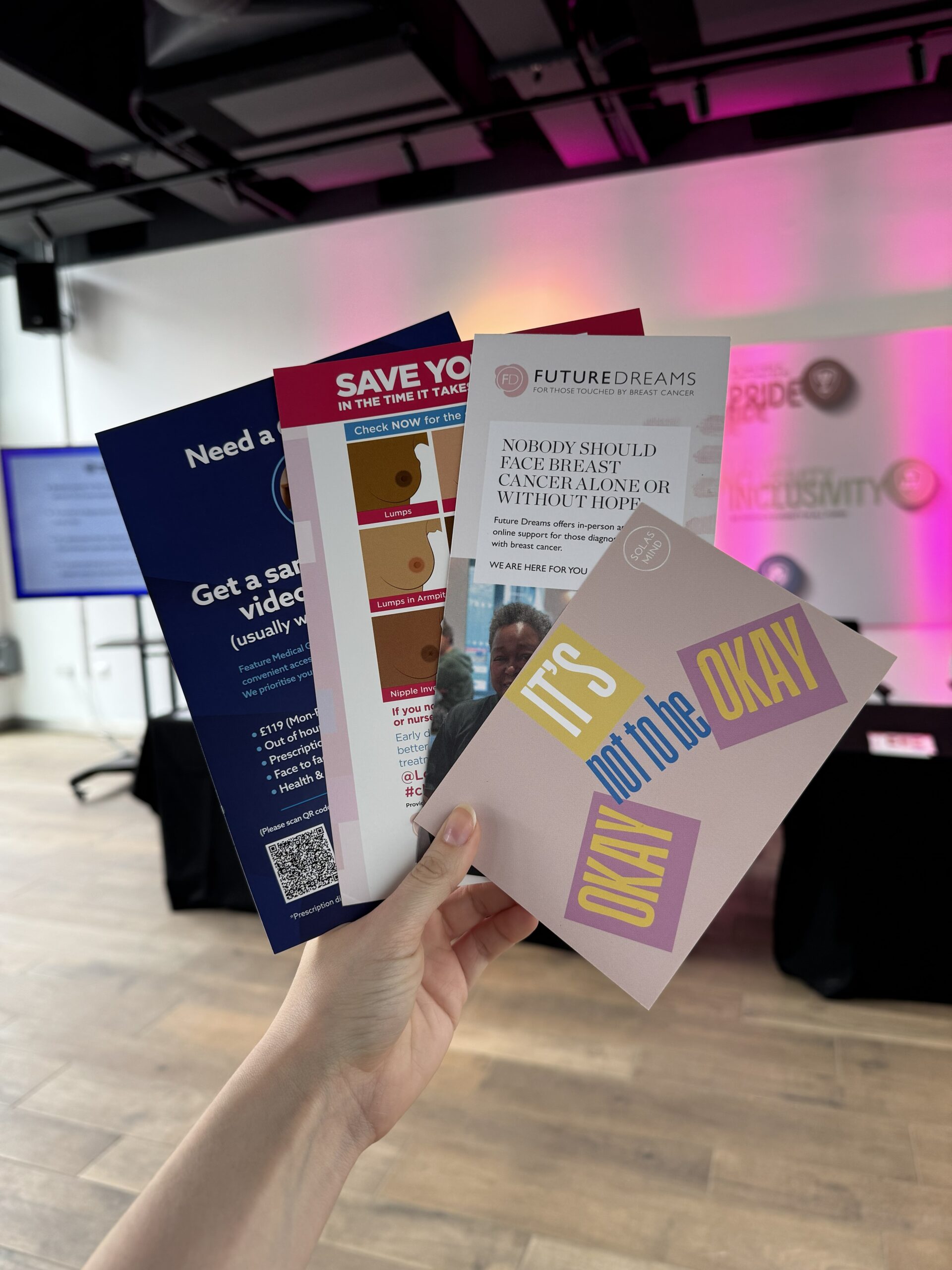 Everyone was able to grab a fresh smoothie as a healthy treat, then to learn more about the information and support available in the drop-in sessions run by the Future Dreams charity. We offered free breast health checks on site throughout the day, delivered by a Feature Medical GP.
