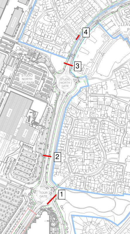 In addition to the Southern Roundabout works, further highway improvements are planned as part of the WBSL expansion, including the installation of new cycleways. These works will also involve renewing street lighting and installing a new signal-controlled pedestrian crossing on Aerodrome Way. To facilitate this, new underground services are required on both sides of Aerodrome Way, and we will need to cross the roads to connect them. Highlighted in red in fig 1 below are the 4 locations where services will need to cross the road.