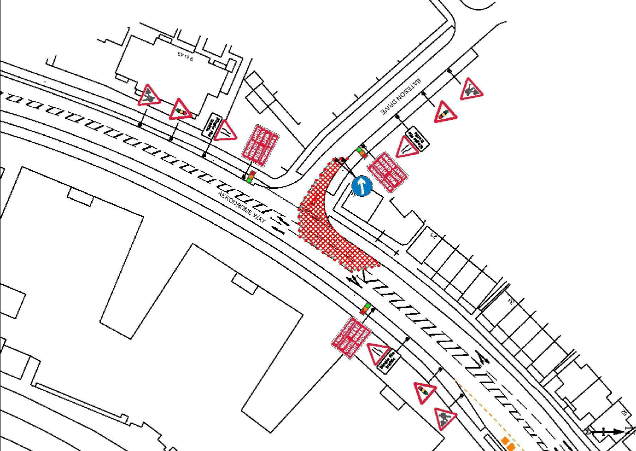 At location 4, at the junction of Bateson Drive, space constraints require that services need be installed by excavating the road. This work will be completed in phases to maintain access that traffic can still enter and exit at the junction. Traffic management measures will be put in place whilst we carry out the work, which will include three-way temporary traffic lights. Details of the proposed traffic management are outlined below.
